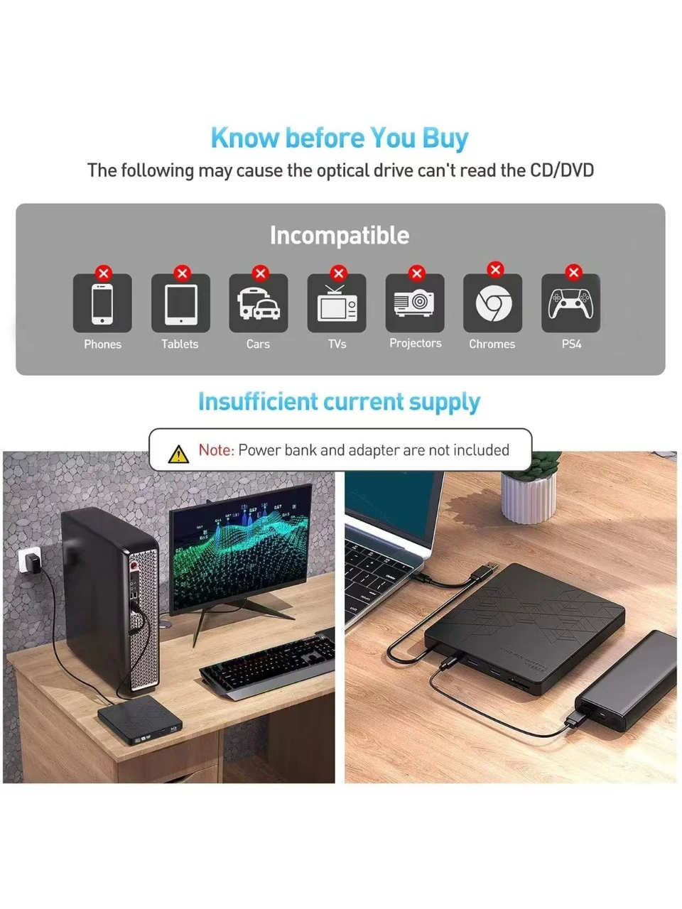 Software Required: This external Bluray drive is compatible with a wide range of devices, including laptops, PCs, working seamlessly with Windows, macOS, and Linux. However, Bluray playback and writing require specific software, such as PowerDVD, Leawo Blu-ray Player, or VLC Media Player. [𝐏𝐥𝐞𝐚𝐬𝐞 𝐧𝐨𝐭𝐞, 𝐬𝐨𝐟𝐭𝐰𝐚𝐫𝐞 𝐢𝐬 𝐧𝐨𝐭 𝐢𝐧𝐜𝐥𝐮𝐝𝐞𝐝 𝐰𝐢𝐭𝐡 𝐭𝐡𝐞 𝐝𝐫𝐢𝐯𝐞.] Simply install your preferred Bluray software to get started.